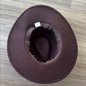 Stylish brown wool western style hat with a black studded band. Worn once. Like new! Elastic band in brim.