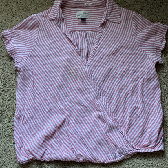 This top looks great with black bottoms and your favorite sneakers. The wrap makes it a great piece for the summer.