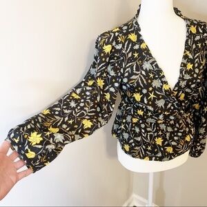 Universal Thread XS Blue Floral Print V Neck Wrap Blouse