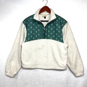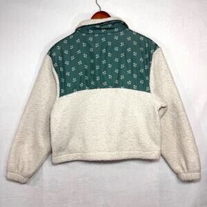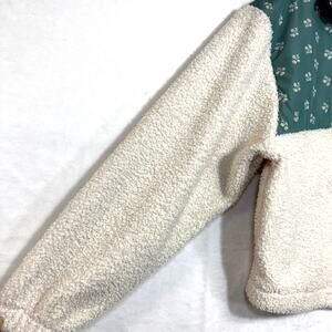 Universal Thread XS Colorblock Faux Sherpa Jacket Green Floral Cream Cabincore