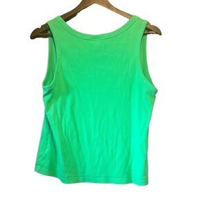 Radiant comfort starts with this vibrant green tank top. A versatile staple, this ribbed tank is designed for a flattering fit and promises effortless style. The sleeveless design keeps you cool and comfortable, making it perfect for layering or wearing alone on warmer days. Its casual yet chic vibe transitions easily from relaxed weekends to light workouts or even a sunny afternoon picnic.