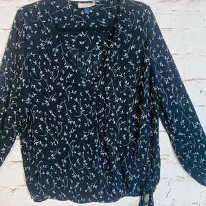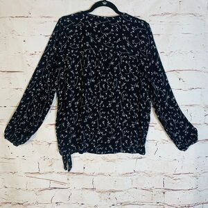 boho blouse, wrap top, floral print, tie hem blouse, long sleeve shirt, universal thread, size xxl, fall style, festival fashion, cottagecore wrap top, casual chic, romantic blouse, floral wrap blouse, comfy top, layering shirt, black floral blouse
