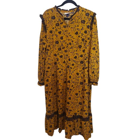 Universal Thread Yellow Floral Cottagecore Maxi Dress XL Long Sleeve
