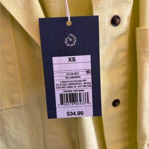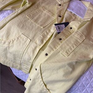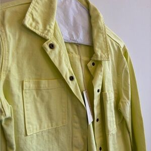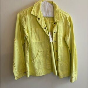 Bright yellow/like green jacket with button closure. Features two front pockets. Stylish and versatile. NWT!