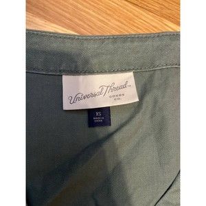 Universal Thread Zip Up V Neck Dress with Pickets Olive Green XS