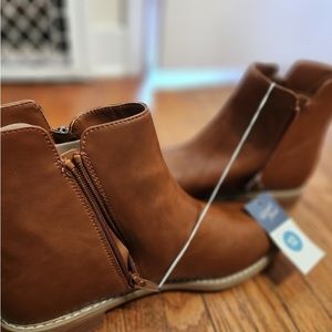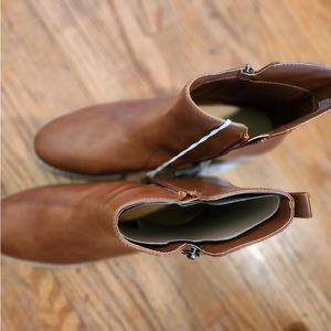 These Cognac color boots are perfect for fall, winter, and spring. Decorative butter zipper and a functional outer zipper. Man made material size 12.