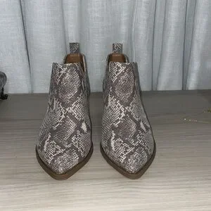 Never worn, size 9.5 slip on bootie. Faux snake skin.