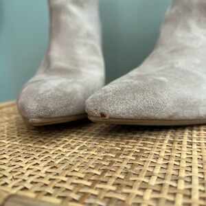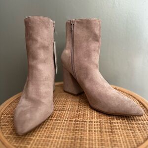 Adorable taupe colored booties. New with tags. A little dirt on bottom from try on. Small blemish on toe of bootie. Hardly noticeable.