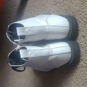 slightly worn condition, inside also slightly worn. lace up boots with the zipper on side. small heel. super cute for any occasion.