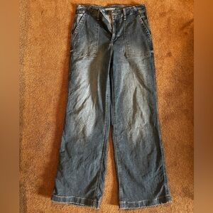 Universal Thread short sleeve linen crop style button down top. Size M. Never worn. Beige/white checkered print.