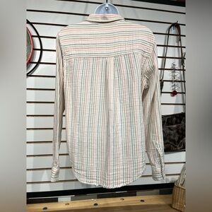 Amazingly soft button-down shirt. Cream with multi-colored stripes.