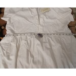 Universal Thread canvas Mini Dress Linen Blend V-neck Short Sleeve White Large, in good pre-owned condition: no wear, still has original store tags, small mark on front, has not been recently cleaned, may be stale from storage. Marked as a women's large, measurements are taken while laying flat and are approximate: (see photos)