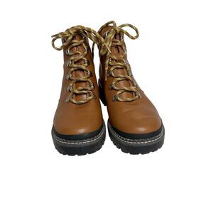 Universal Thread chesnut Kira hiking boots size 8. Man made upper and outsole. Lace up. Some discoloration on the left toe but otherwise great condition.
