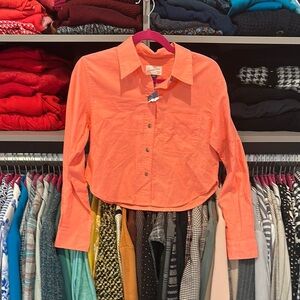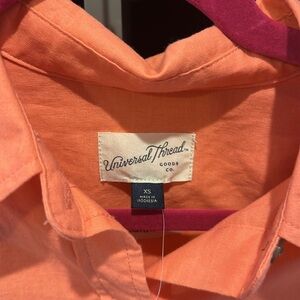 Universal Thread coral long sleeve cropped fit button down shirt size XS NWT
