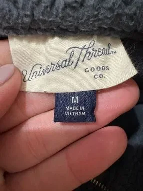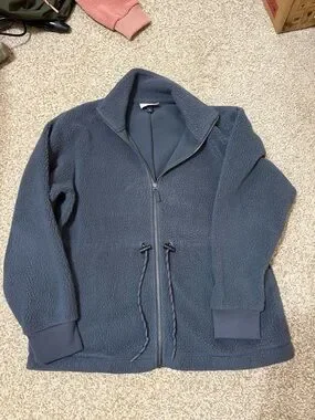 Cozy sherpa zip-up jacket. Full front zipper and adjustable drawstring waist. Universal threads. Size medium. Worn very little, looks brand new.