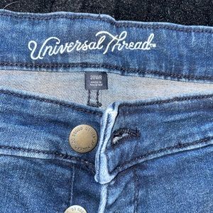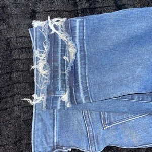 They’re in perfect condition, I never wore them because I didn’t fit them. They have a button up front instead of a zipper, frayed ends on the legs, beautiful dark wash.