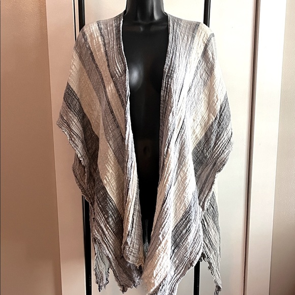 Gauzy blue and cream cotton kimono/beach cover. One size fits most