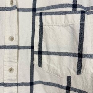 Navy blue/white windowpane plaid flannel button up shirt