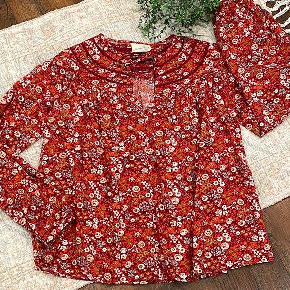 A red, orange, white, tan and blue floral print top from Universal Thread, size small.