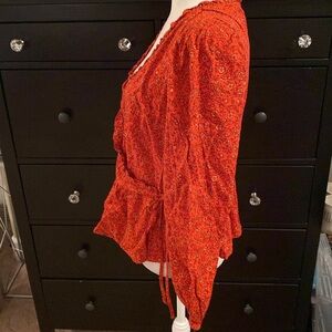 Universal Thread wrap long-sleeve top. Size M. Burnt orange floral pattern