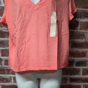 universal thread cropped tee xl, rhythmic pink t-shirt xl, cotton shrunken top plus size, v neck pink crop top, casual cropped tee universal thread