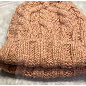 Universal Thread Pink Cable Knit Pom Pom Fleece Lined Beanie Hat One Size Cozy