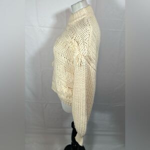 Universal Thread Wool Blend Knitted mock turtleneck cozy sweater balloon sleeve cream off white boho frayed fringe chunky