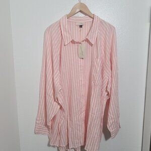 Universal Threads 3XL Candy Stripe Pink and White Long Sleeve Button Up NWT