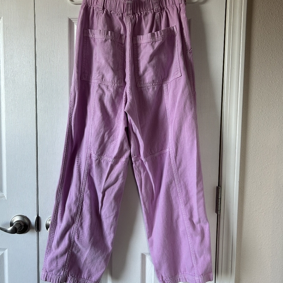 Stylish lavender cargo pants with elastic cuffs. Perfect for casual wear.