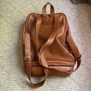 A wonderful brown backpack. A great addition to a wardrobe. Has some slight wear on the corners, but isn’t very noticeable at all.