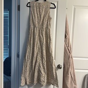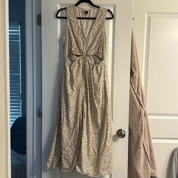 Universal Threads midi/maxi dress, size medium. Side cut-outs have slight seam separation, but does not cause any issues when wearing. Elastic waist, deep V neck line. Super cute for Spring/Summer. Pet & smoke free home.