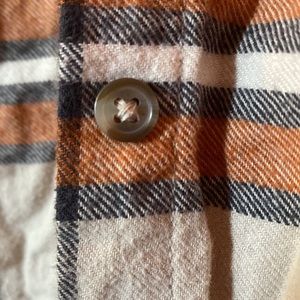 Universal Thread Flannel. Colors are orange, navy blue, and cream. Comfy flannel for this fall season!