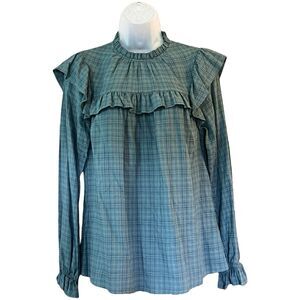 Universal Threads Green/Blue Plaid Ruffled Shirt Sz Small Prairie Cottagecore