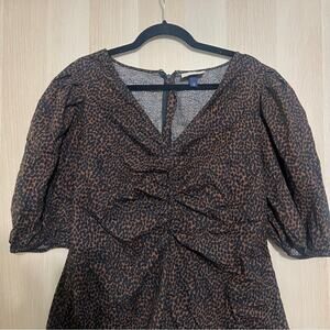 Mini dress size 12. Great condition but loose clasp. Zipper closure is sufficient though. Animal print. Puff sleeves