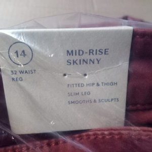 Universal Threads Mid Rise Skinny Jeans - Button Fly - Brick Red Sizes 00 to 18