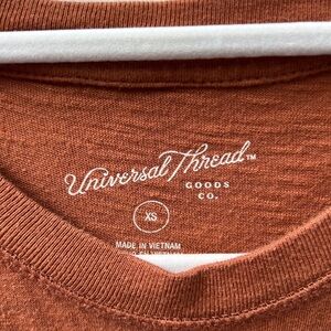 Universal Threads Mother Earth Cropped Tee, Sz XS. Boxy fit. Beautiful rust color, perfect for fall. Small hole/snag on front near hem (see pictures).