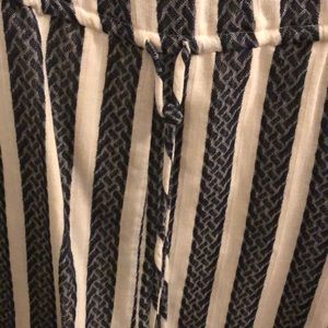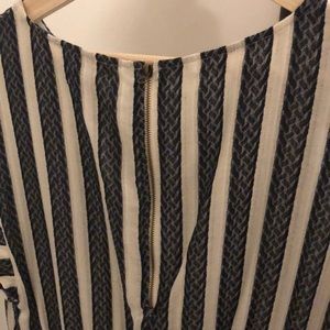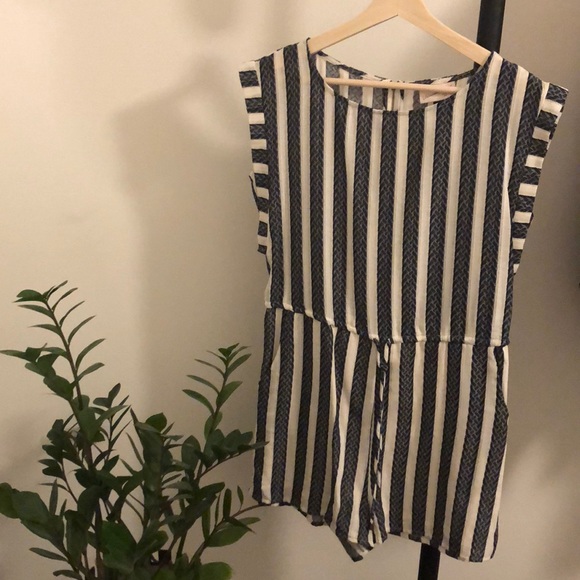 Never worn!!! Striped navy and white shorts romper with waist drawstring and zipper at the back. True to size.