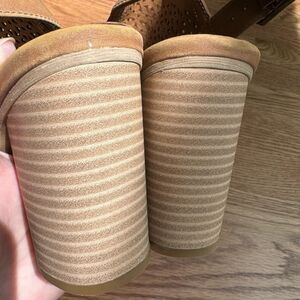 Versatile sandals for Summer. Comfortable heels that dress up any outfit. Peep toe to showcase your pedicure. Excellent condition.