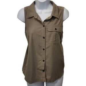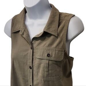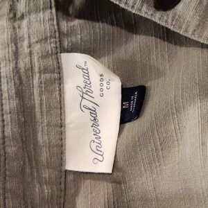 Comfortable fabric in a khaki with a slight green hue. Button down with front pocket.