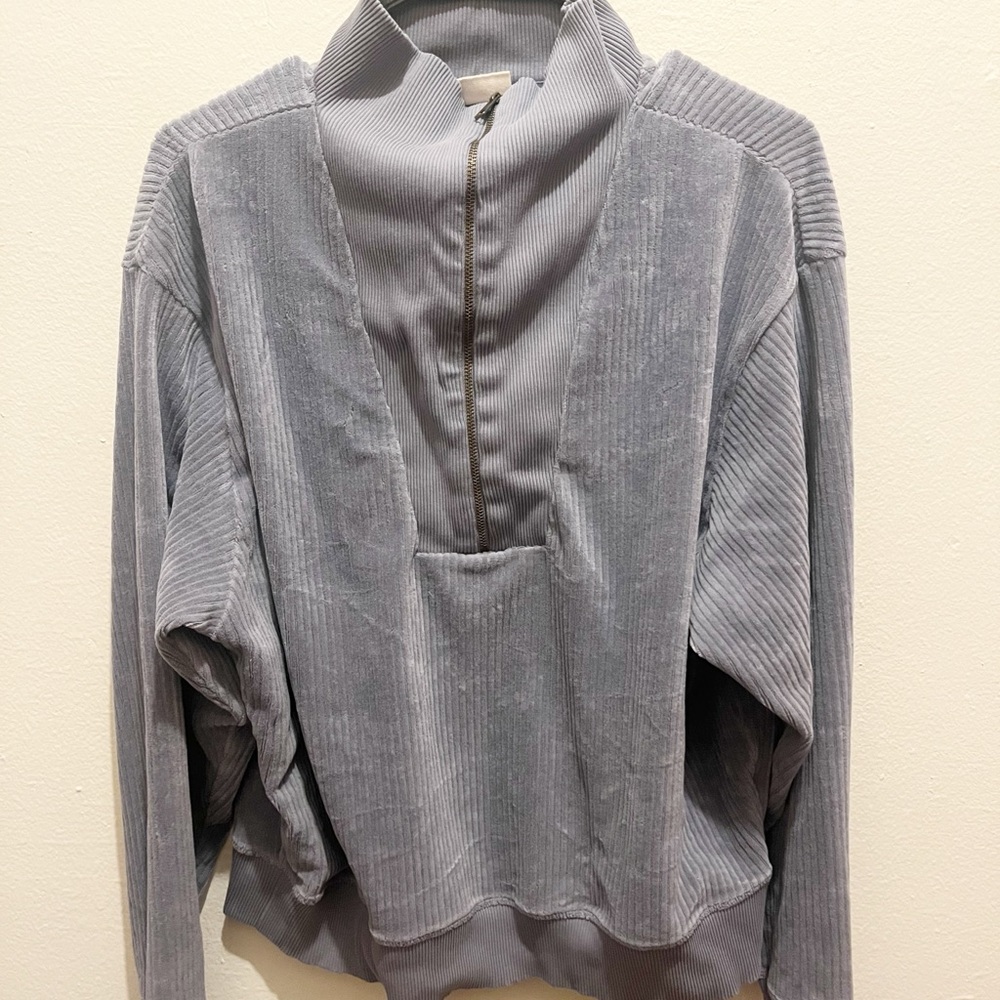 The comfiest sweater! Size tag has been removed but it fits like a large