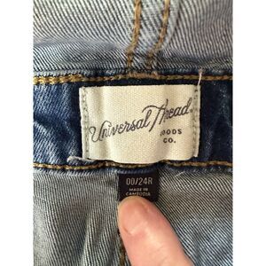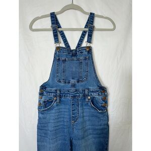 Universal Threads Women's Bib Overalls Mid Rise Distressed Raw Edge Hem Size 00/24R. Excellent pre-owned condition.