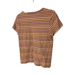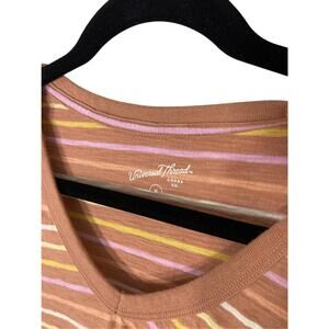Universal Threads Women's Tan MultiColored Striped Kidcore Casual Short Sleeve