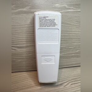 White remote control for electronics. Simple, ergonomic design for easy handling. White color blends with home electronics and decor. Compatible with a variety of devices. Reliable replacement part for everyday use.
