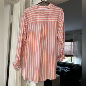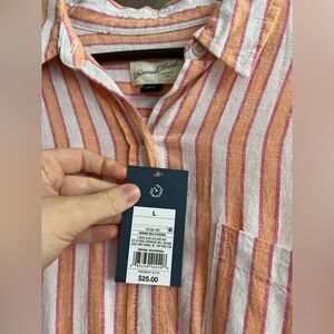 Pink and orange linen stripe button down universal thread size large. New with tags