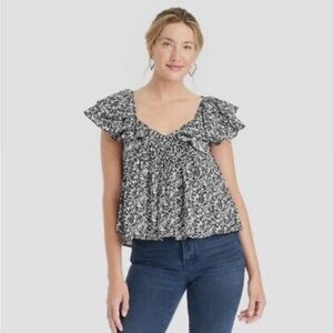 Brand new universal thread target flutter sleeve top this top is longer in the back so cute with jeans or leggings.