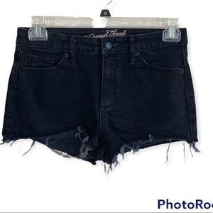 These stylish black denim shorts from Universal Thread are a versatile and edgy staple for your summer wardrobe. The high-rise fit is both comfortable and flattering, and the raw, frayed hem gives them a cool, worn-in look. Pair them with a graphic tee for a casual festival outfit or with a flowy blouse for a more polished look.