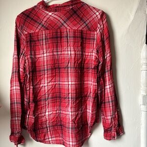 Lightweight plaid button. Perfect for fall! Great vibrant red. 100% rayon