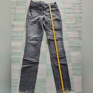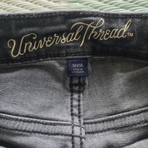 Universal thread pants size 0/25 black jeans slim leg no hem measurements: waist 31cm, hip 41cm, high rise 23cm, length 91 cm, 91% Cotton 7% recycled polyester 2% spandex, in very good condition.