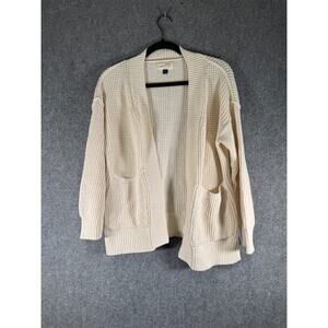 Universal threads Sweater Women XS Beige Crochet Knit Cardigan Coastal Pocket