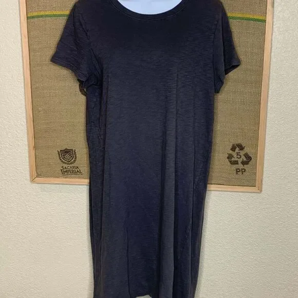 Universal Thread Short Sleeve T-Shirt Dress in Charcoal Gray, Women's Size M. This versatile core midi dress features a comfortable slub knit texture and a relaxed silhouette.